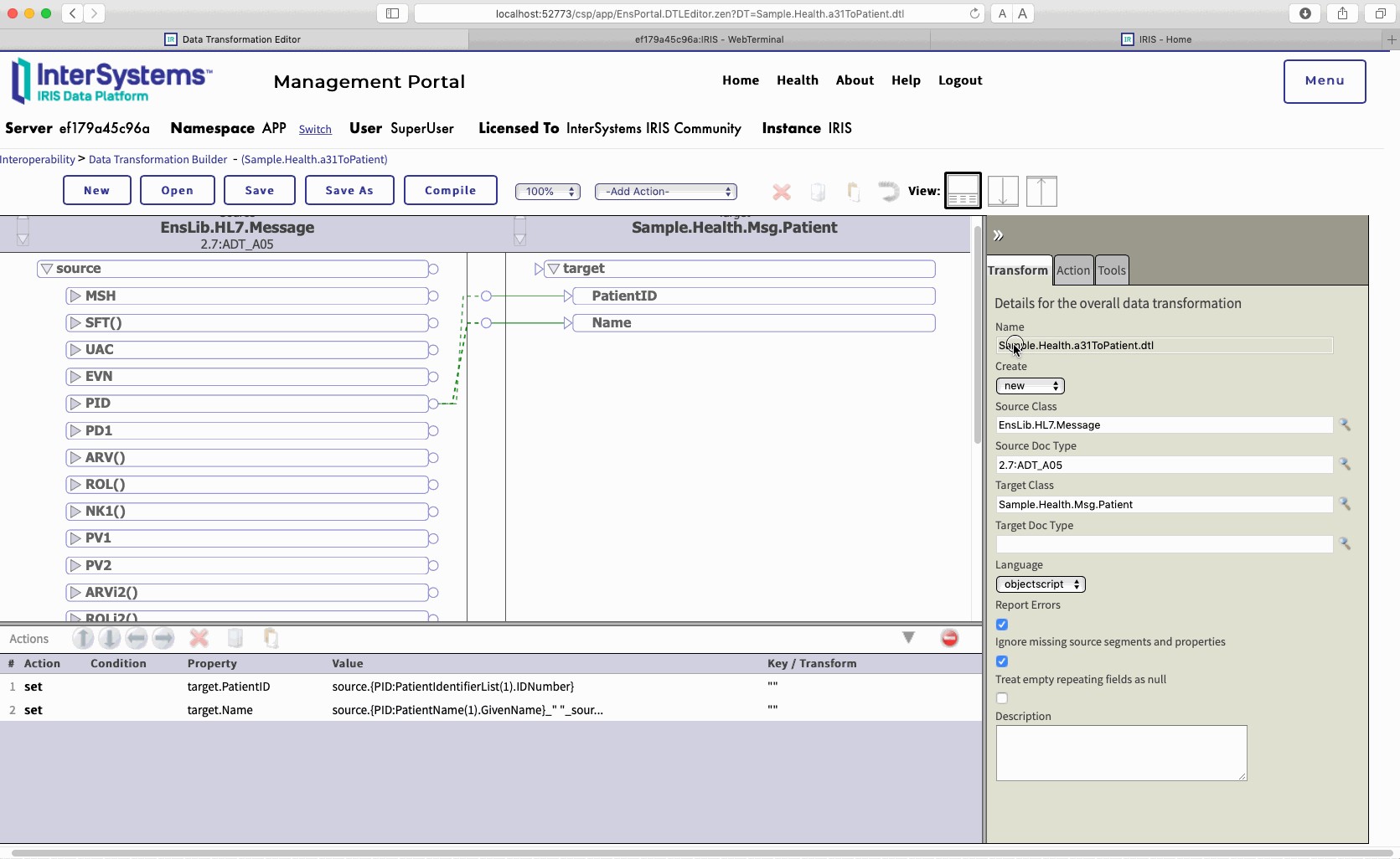 Nous en sommes maintenant à 142 lignes de code écrites, et nous avons une application d'InterSystems IRIS qui persiste les données, les a chargées en utilisant LOAD DATA, fournit une API REST de base pour la visualisation et l'édition des données, et un moteur d'intégration avancé fournissant un Support de décision basé sur des appels à un service REST externe.  Assurément, personne ne peut demander mieux?